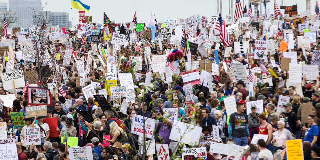 Thousands of anti-Israel protesters gather in Washington D.C. to ”march on ICE” and demand the release of the Syrian-Palestinian Columbia University protest leader Mahmoud Khalil.
