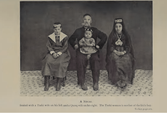The group crossed the desert five times, traversed the Tibetan plains, and eventually reached Zaysan via Shauyeshek. In Zaysan they met with Kazakh families and documented their encounters. For example, one Kazakh man asked if they knew how to operate a sewing machine, likely one he had purchased from Russians. They also met a Nogai man with two wives and a son, one wife being Kazakh and the other from another Turkic group. Throughout the book, the authors include photographs and descriptions of the people they met along the way.